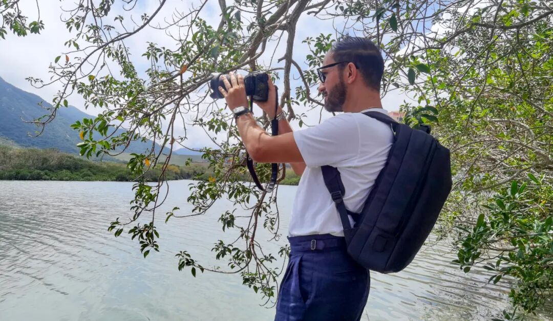 Matteo Convertino takes photos of mangrove forests in Dongchong, Dapeng New Area.