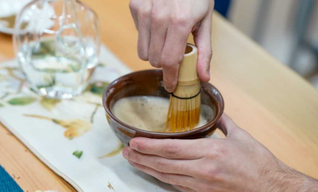 Guided by teacher Cai Haiyun from SCBC, the first lesson focused on the intricacies of the tea ceremony. Students participated in various steps including warming the bowl, whisking tea powder, adding hot water, and stirring. Carefully maneuvering the tea whisk, they blended the tea powder into a smooth paste. Teacher Cai emphasized that the tea ceremony is a feast for the senses, transforming color and form in a visually and tactilely immersive experience. Through repeated stirring, the green tea gradually frothed into a white foam atop the water, resembling miniature "cloud mountains."