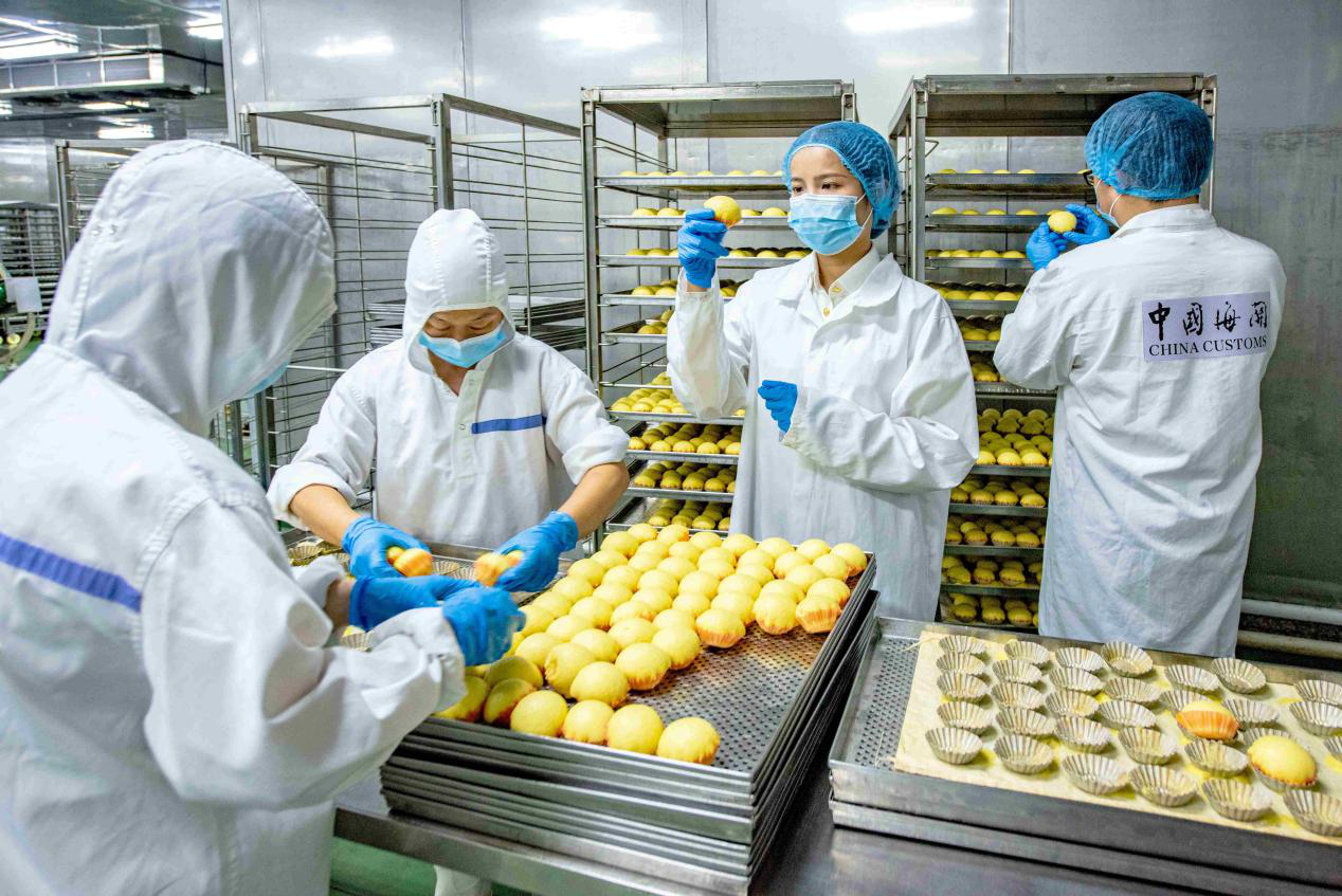 Shantou Customs officers supervise the production process of food with a short shelf life for Hong Kong and Macao. (Photo provided to GDToday)