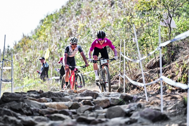 At 9 a.m., the men's open group took the lead in charging forward, followed by the women's and men's fitness groups. The players sped along the 5.6-kilometer mountain forest track. With a vertical drop of 140 meters, the riders' excellent bike control skills drew cheers.
