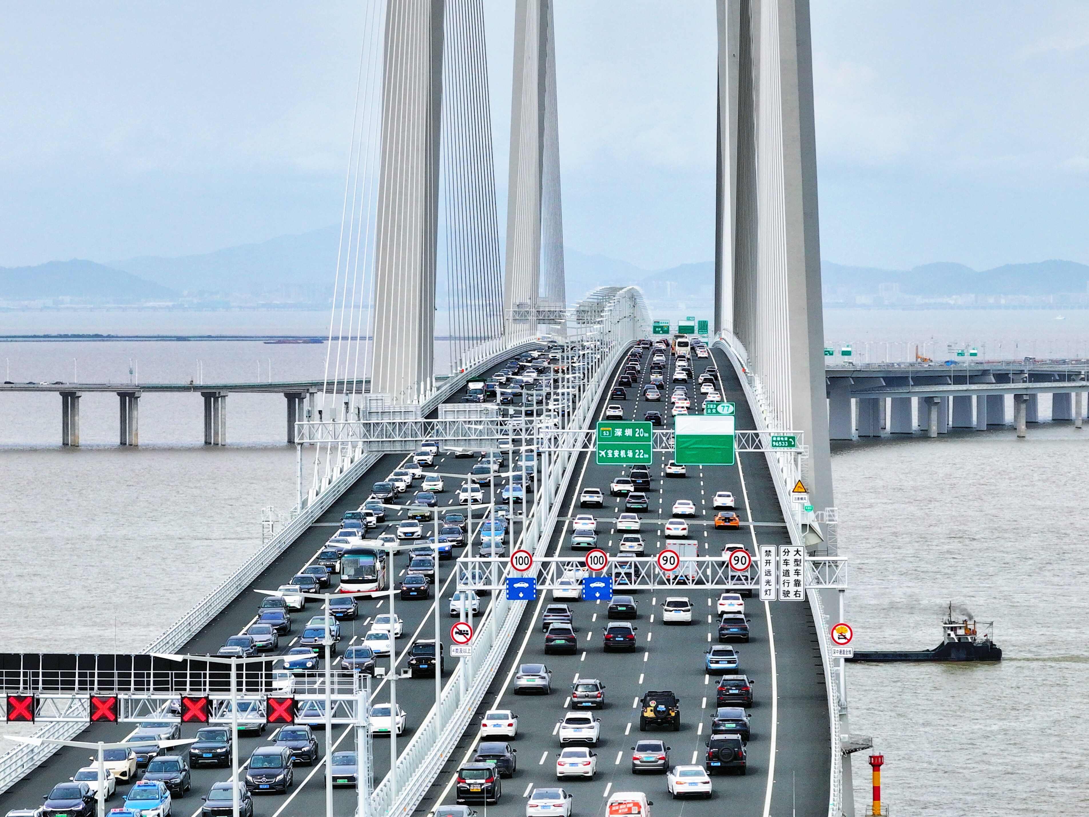 I've been in the road and bridge engineering field for 41 years. Upon joining the Shenzhen-Zhongshan Link project, I found it exceptionally unique. The average pile foundation depth is over 130 meters, with each tower containing 28 piles, making a total of 56 on both sides. The Shenzhen-Zhongshan Link boasts three world records: it is the longest continuous span over the sea, has the highest height from the bridge deck to the water surface, and its anchorage is the largest sea anchorage. Its main cable steel wire, rated at 2060 MPa, is the strongest in China. Participating in such a super project before retirement is an honor. The Greater Bay Area will have an even brighter future!