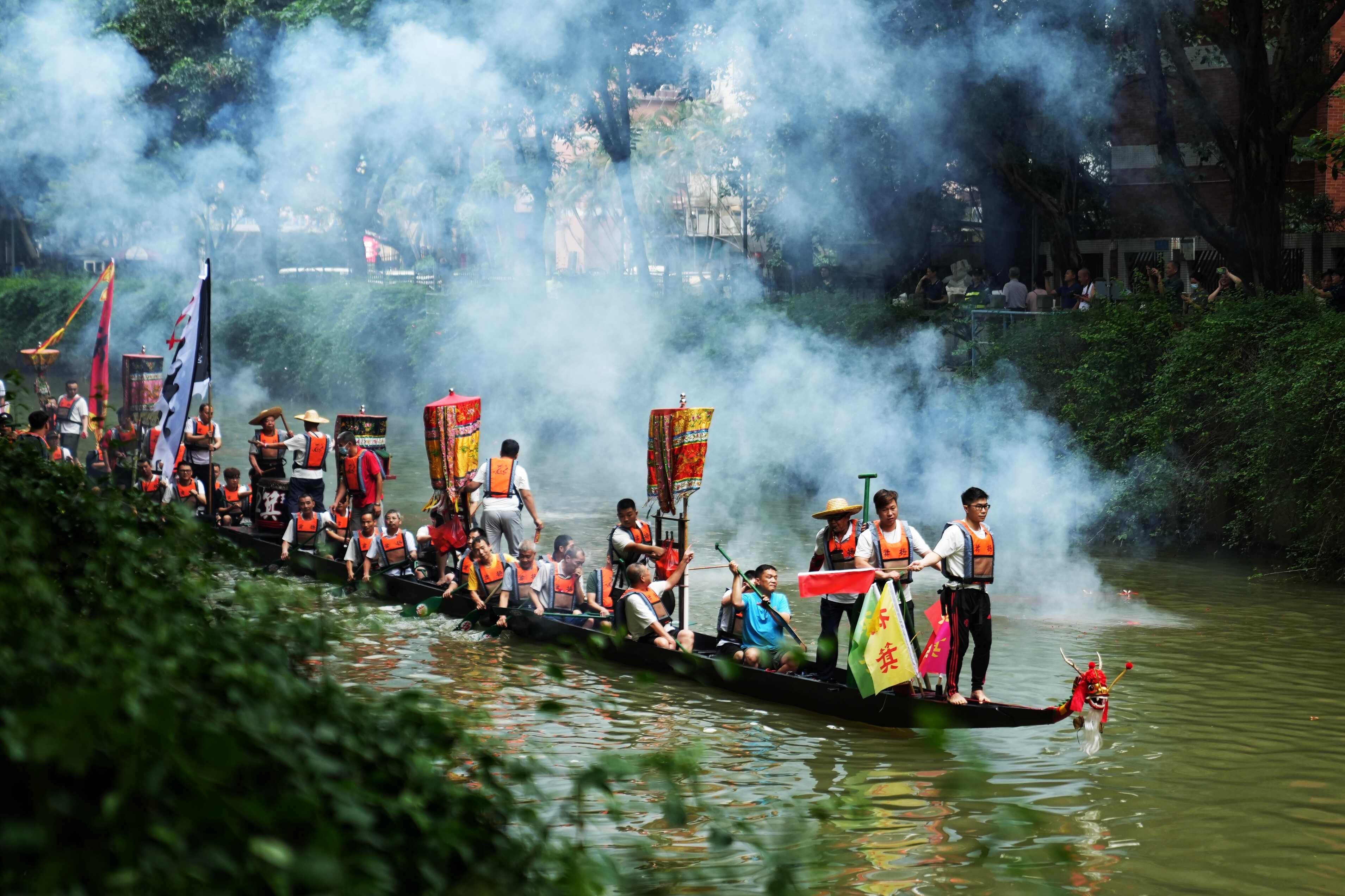 Qin explained that this year, the village will send out four dragon boats to visit various locales. On the first and third days of the fifth lunar month, the boats will tour the villages of "Hebei" (north of the Pearl River), while on the second and fourth days, they will visit villages of "Henan" (south of the Pearl River). On the fifth day of the fifth lunar month, Yangji's dragon boats will perform a grand parade along the Yangji River.