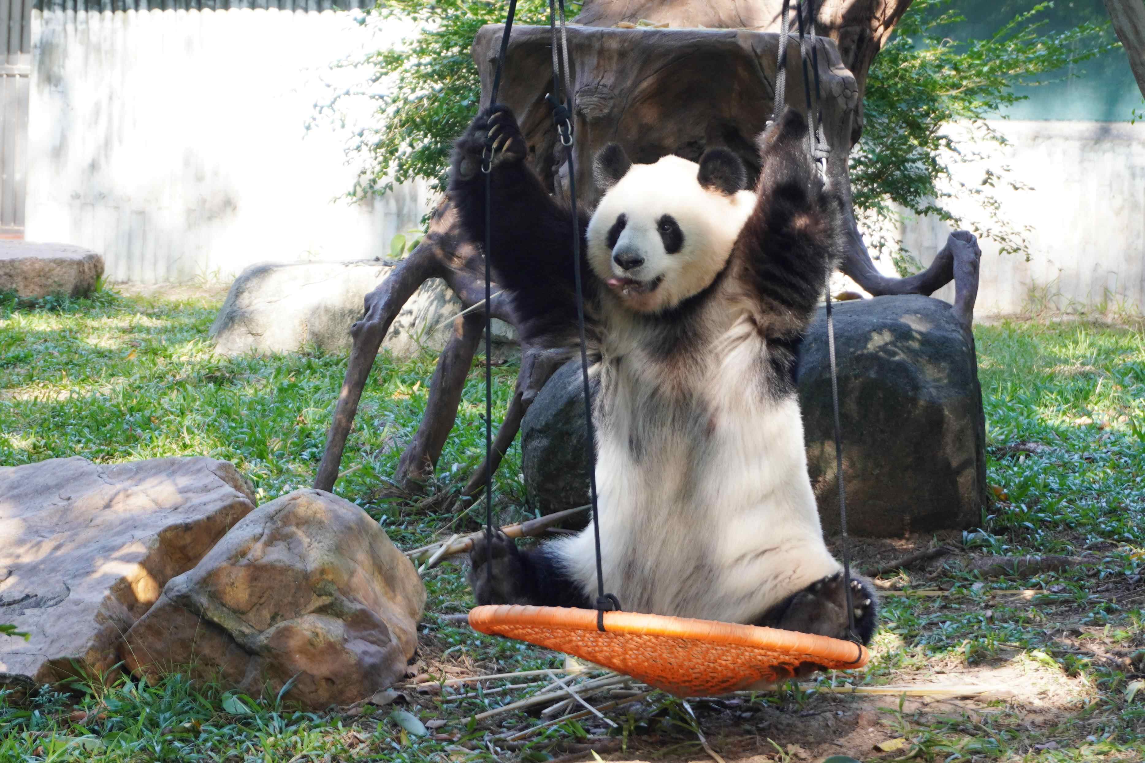 After breakfast, "Ya Yi" goes for a stroll in the outdoor yard, climbs to a high spot on a tree, gazes into the distance, and then takes a short nap. Meanwhile, her brother "Xing Yi" gets full of energy, enjoying a refreshing dip in his private pool. Following that, he engages in a variety of activities, from playing soccer, somersaulting to tree climbing—a true showcase of his playful skills.