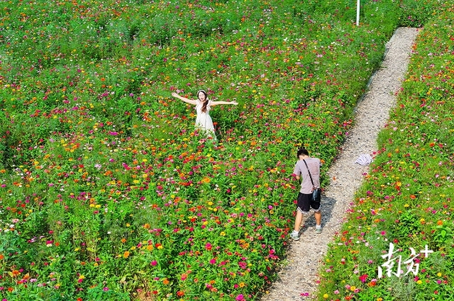 Recently, Jinliwan Ecological Wetland Park in Sanjiao Town, Zhongshan City, has entered its prime viewing season for zinnia flowers.