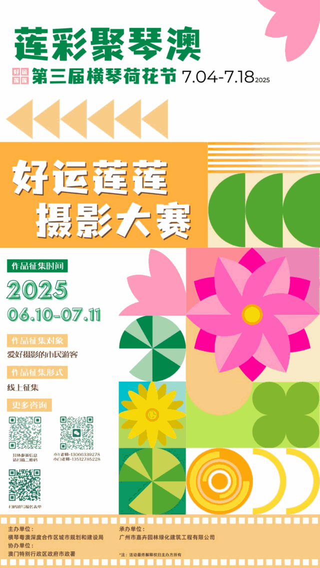To enter, scan the QR code below to complete the entry form with your details and a photo taken at the Lotus Festival as proof of location. Name each entry as follows: Work Title + Name + Location (Hengqin Lotus Garden or Taipahouses Museum) + Mobile Number.