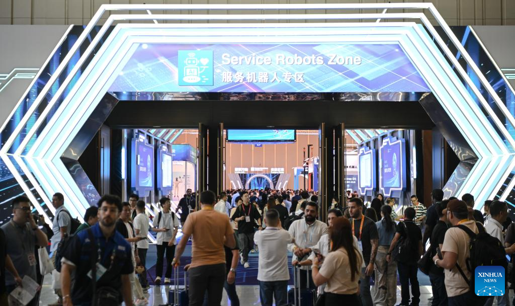 People visit the Service Robots Zone during the 137th edition of the China Import and Export Fair, also known as the Canton Fair, in Guangzhou, south China's Guangdong Province, April 15, 2025. The 137th edition of the Canton Fair kicked off on Tuesday, with the number of export exhibitors exceeding 30,000 for the first time in the history of this famous event.