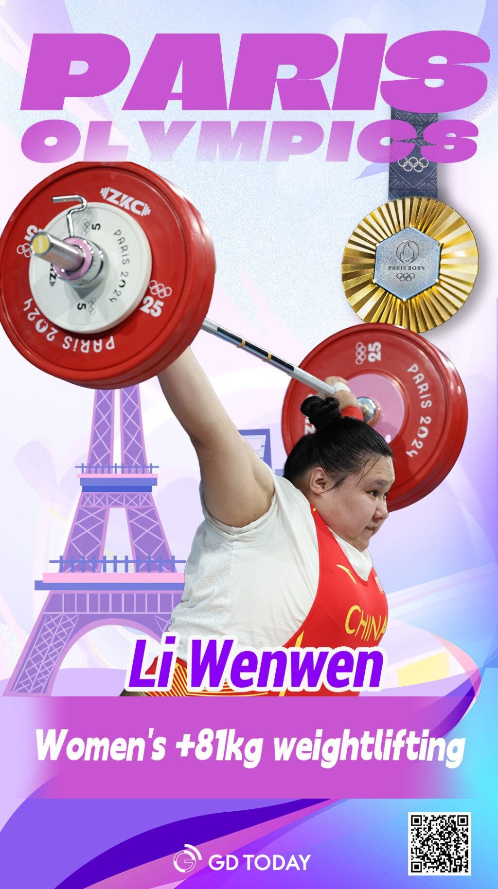 Chinese weightlifter Li Wenwen claimed the women's +81kg title on the last day of the Paris Olympics on Sunday in the South Paris Arena.