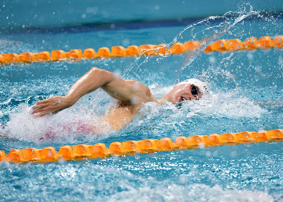 Chinese swimmer Sun Yang in action during the men's 400m freestyle event at the National Spring Swimming Championships in Qingdao, Shandong Province on March 19, 2025. (Xinhua/Li Ziheng)
