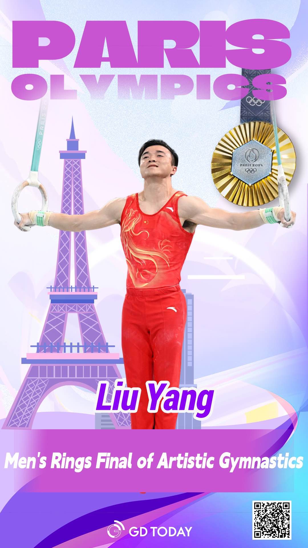 Liu Yang secured China's first gymnastics gold medal of the Paris Olympics on Sunday when he led all the way to win the men's rings event.