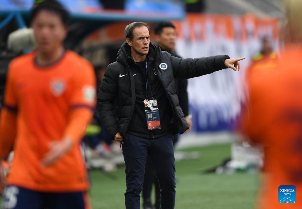 Christian Lattanzio, head coach of Shenzhen Peng City, gestures during the 2nd round match between Shenzhen Peng City and Qingdao Hainiu at the 2025 Chinese Super League (CSL) in Qingdao, east China's Shandong Province, March 1, 2025. (Xinhua/Li Ziheng)