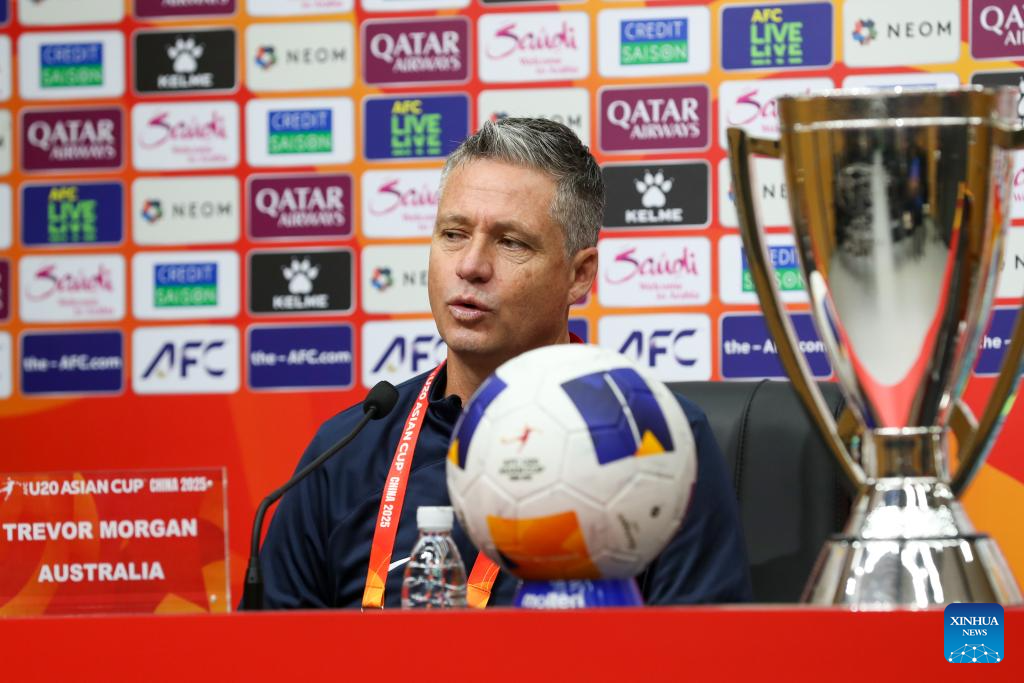 Australia's head coach Trevor Morgan attends a press conference before the AFC U20 Asian Cup football tournament final match between Australia and Saudi Arabia in Shenzhen, south China's Guangdong Province, Feb. 28, 2025. (Xinhua/Li Xulun)