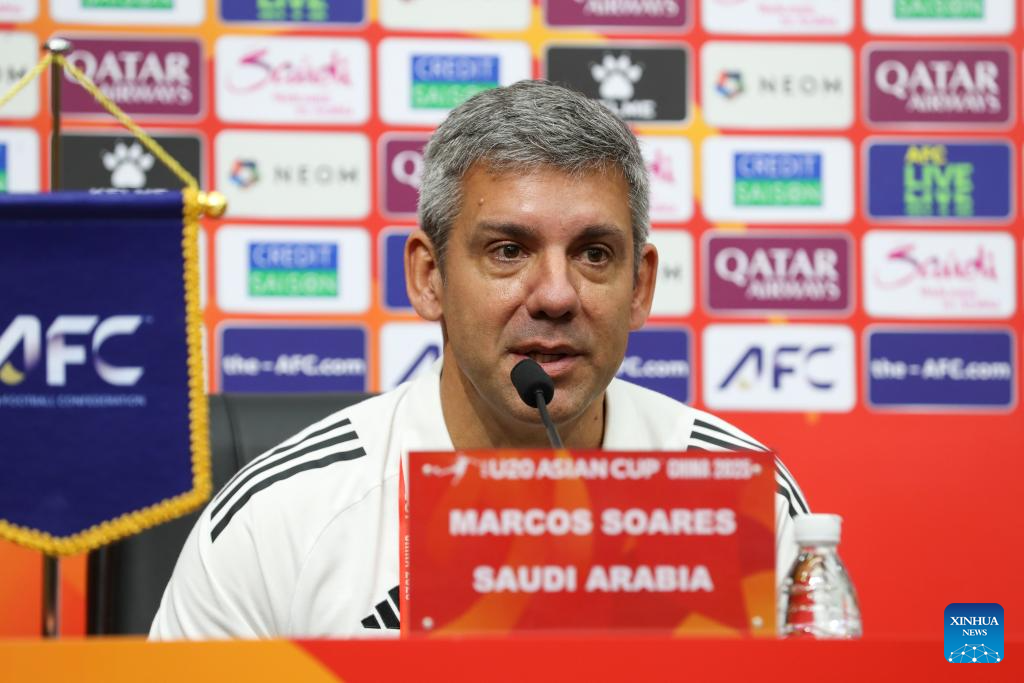 Saudi Arabia's head coach Marcos Soares attends a press conference before the AFC U20 Asian Cup football tournament final match between Australia and Saudi Arabia in Shenzhen, south China's Guangdong Province, Feb. 28, 2025. (Xinhua/Li Xulun)