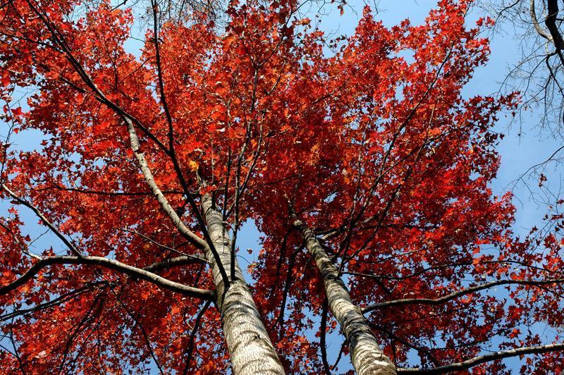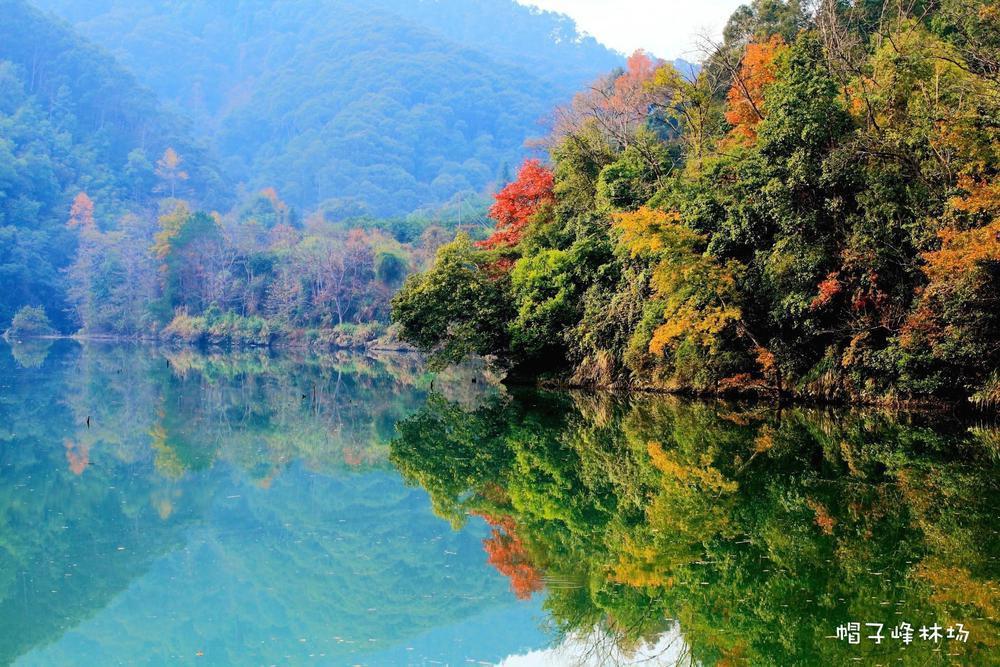 In addition to Maozifeng, other destinations in Guangdong also offer captivating foliage. As temperatures drop, the maple leaves in Yunji Mountain change from green to orange and then to red, swaying in the wind and reflecting a warm glow in the sunlight. At Tianjing Mountain, the fallen leaves of bald cypresses form a colorful palette of red, yellow, and green, resembling a spilled paint palette. Wanlv Lake presents a world of green mountains and waters, with red leaves dancing on the green waves, creating a breathtaking scene of "red leaves hidden in the green sea". The maple forest viewing area at Shimen National Forest Park is currently beginning to turn red and will reach its peak in late November.