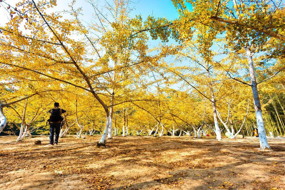 In mid-November, Shaoguan's Maozifeng Tourist Area, known as the "hometown of Chinese Ginkgo Trees," enters its best viewing period. With over 8,000 ginkgo trees scattered along a seven-kilometer sightseeing route, the visitors embrace the autumn atmosphere against the backdrop of white walls, black tiles, and a clear blue sky.