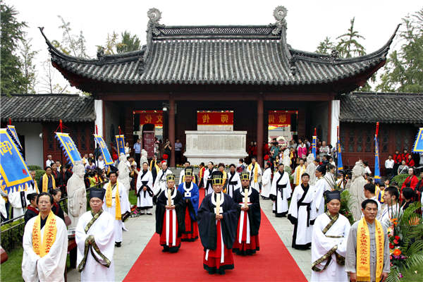 A ritual is staged at the Confucius Temple in Nanjing, Jiangsu province. LIU JIANHUA/FOR CHINA DAILY