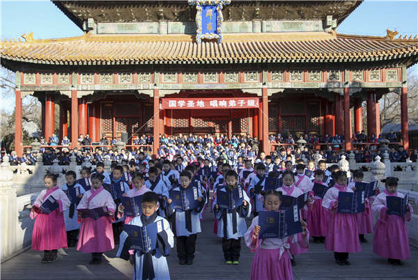 Children read classics by Confucius as part of an event at the Confucius Temple in Beijing. WANG ZHUANGFEI/FOR CHINA DAILY