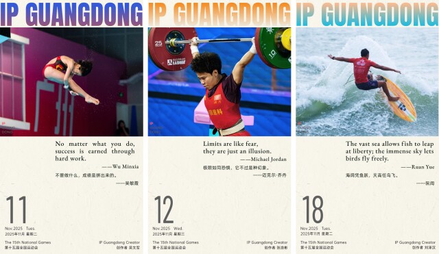 Farewell Is Not the End: Looking back on each day of the 15th National Games, from the grand opening ceremony held on November 9 to the splendid closing ceremony on November 21, IP Guangdong's original calendar posters documented every moment and witnessed the birth of legends together.