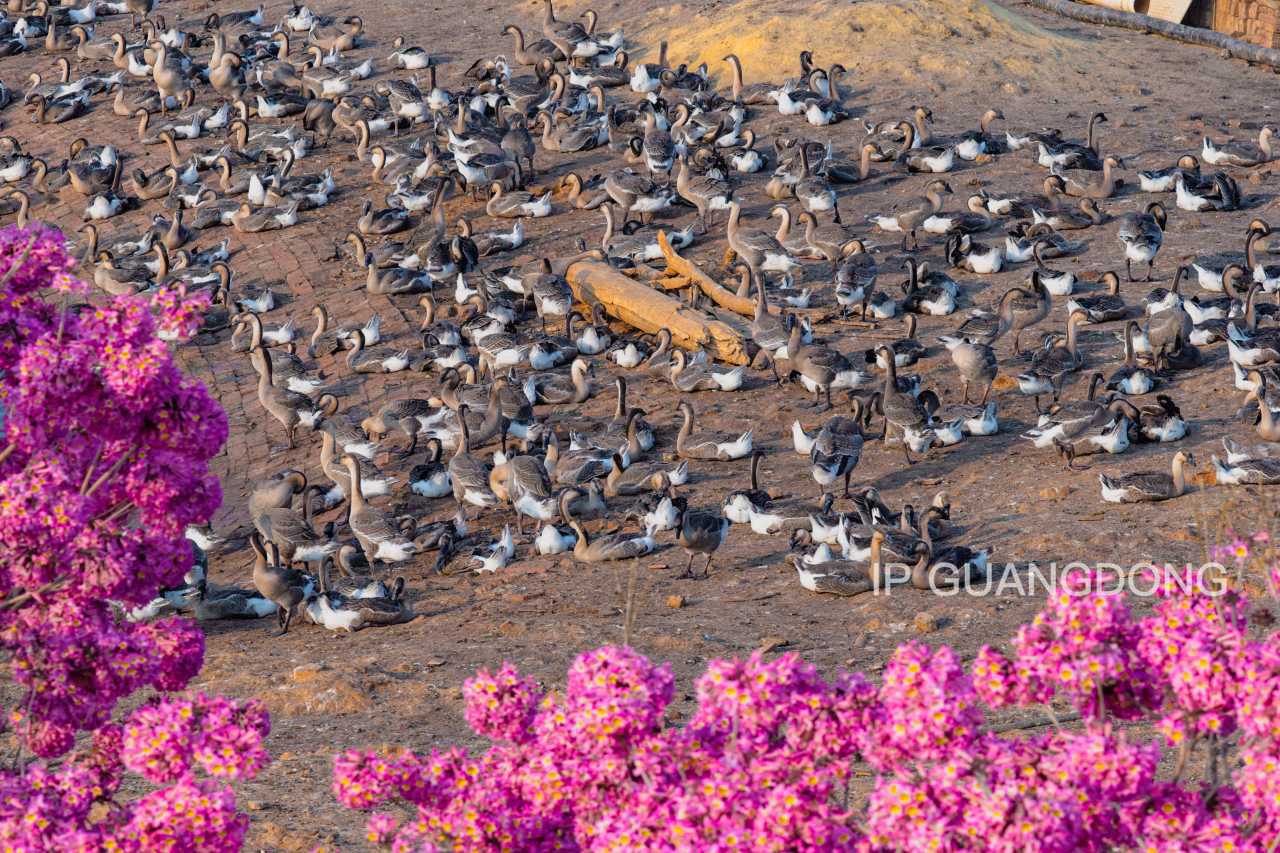 By the ponds, purple trumpet trees form a sea of blossoms; on the lakes, flocks of waterfowl glide across the water. Guangdong in December lacks the freezing cold of a snow-covered world, boasting only lush vegetation and vibrant vitality.