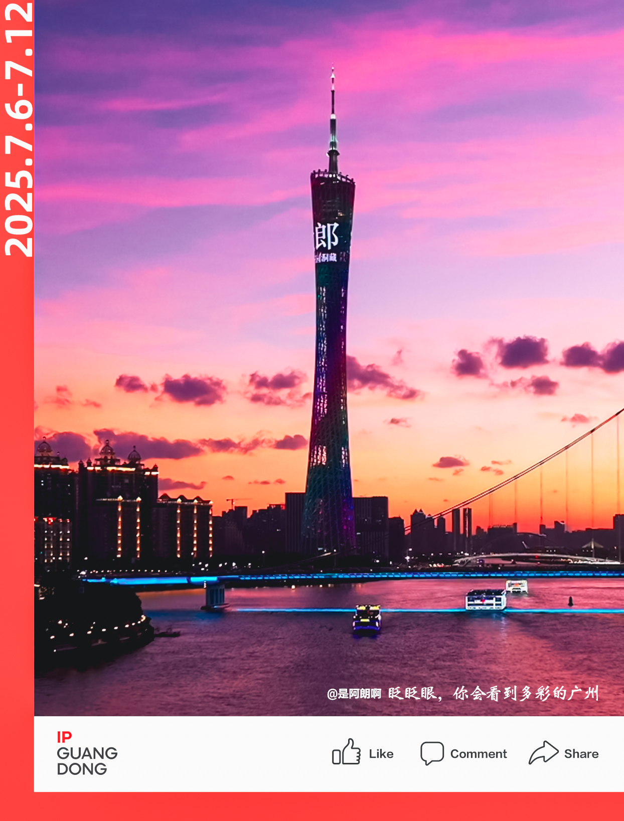 Blink, and you might just catch Guangzhou cloaked in color. As the setting sun casts its final glow, the skies above the city morph into a flowing pink-and-purple dreamscape. In the aerial shots by photographer @IsAlang (@是阿朗啊), the Canton Tower stands tall in the evening haze, while the Pearl River below becomes a mirror to the heavens, reflecting the soft splendor of the sky and skyline alike.