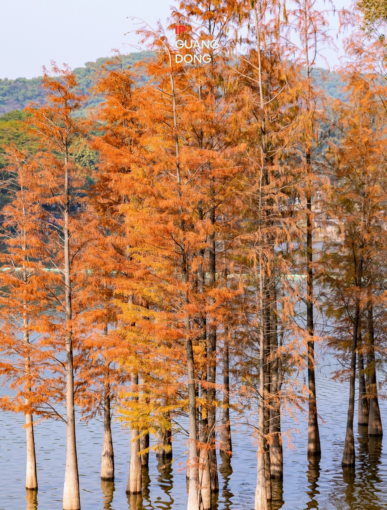 At Changjiang Reservoir in Zhongshan's Wugui Mountain, bald cypresses are bursting with the most brilliant hues of the year, attracting numerous tourists and photography enthusiasts who flock to admire their beauty.