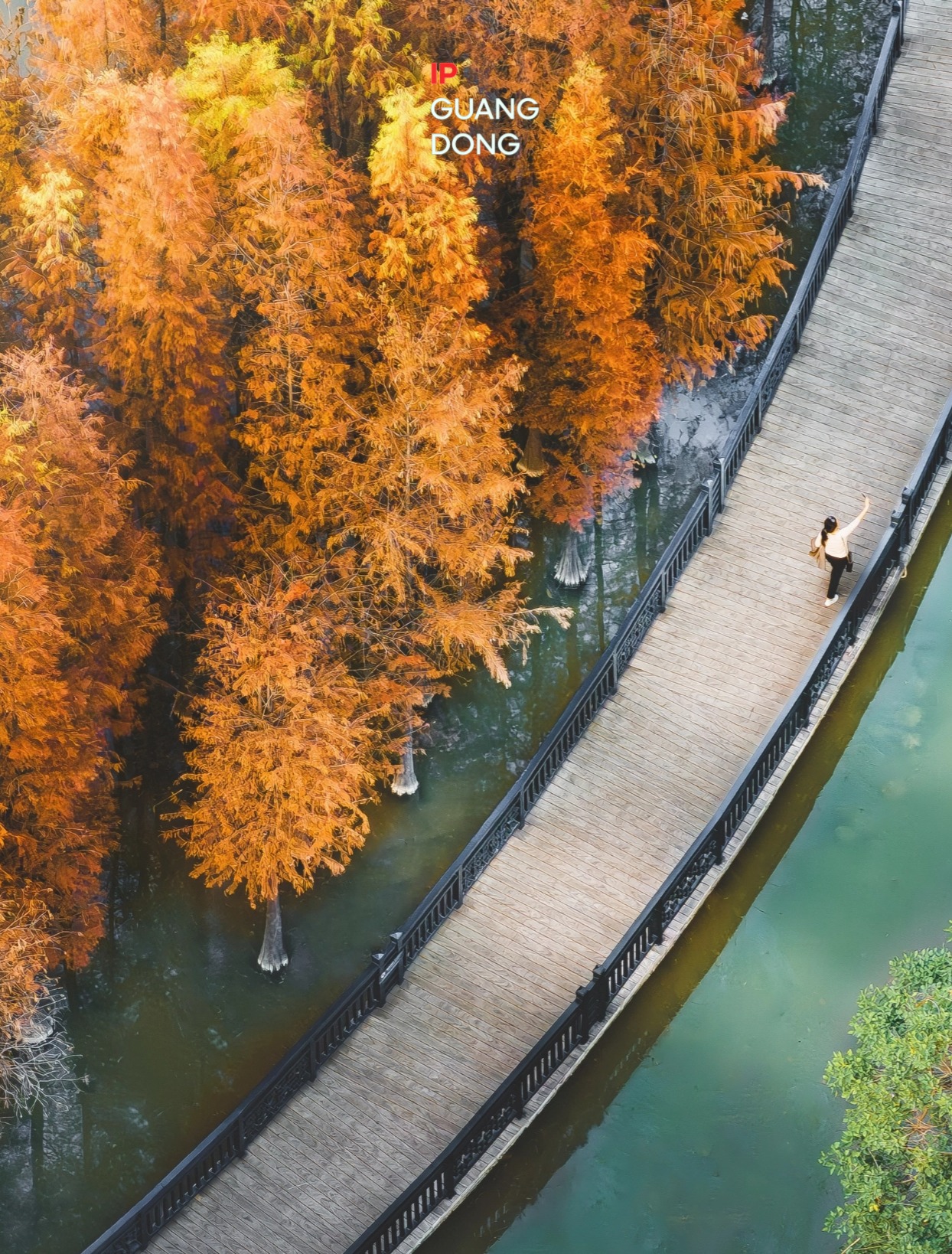 As temperatures gradually drop, bald cypress trees at Guangzhou's Luhu Park, Yunxi Botanical Garden, and other locations have entered their peak viewing period.