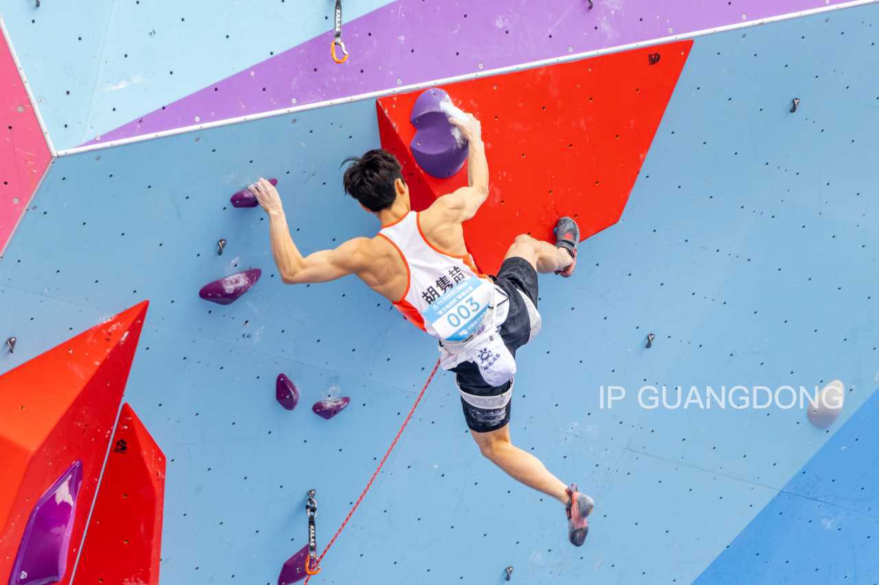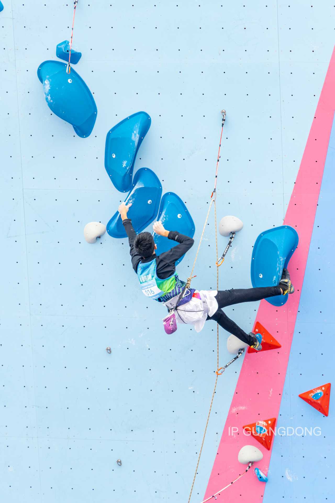 In the rock climbing event, athletes clutch the holds tightly with their fingertips, climbing the 90-degree vertical plane to defy the impossible.