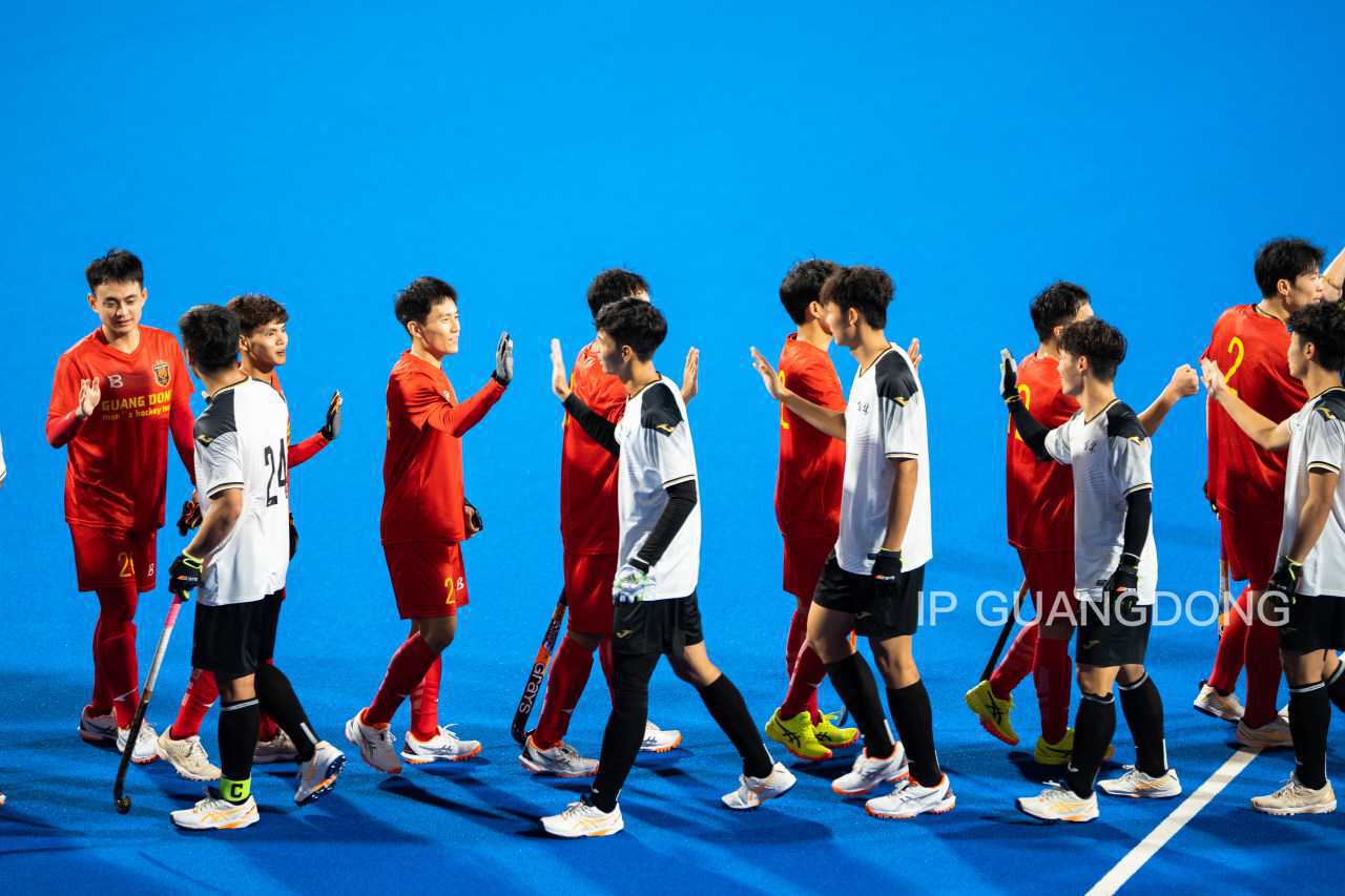 In the Men's Field Hockey Match, offensive and defensive transitions shift in the blink of an eye, as team wit blooms on the field.