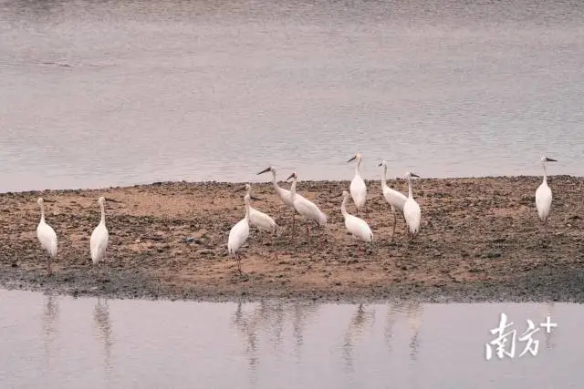 On January 20, villagers in Mashi Town, Shixing County, Shaoguan, detected three white cranes in a riverside shallow. This species is also listed in the first-class state protection list.