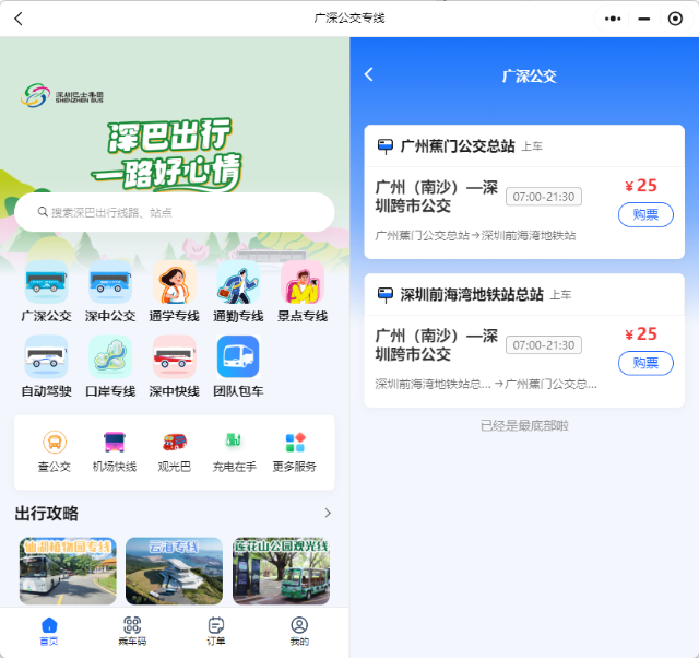 Tickets can be purchased online through Shenzhen Bus's "深巴出行" mini-program on WeChat, where passengers can select the "广深公交" (Guangzhou-Shenzhen Bus) option to buy tickets.