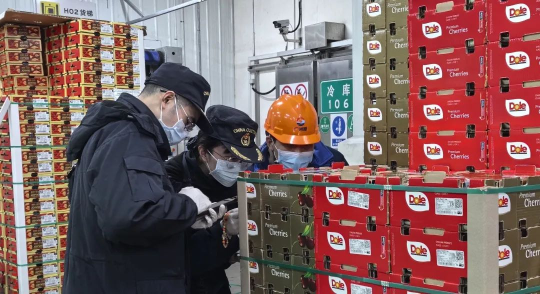 On the evening of December 20, the first Cherry Express loaded with imported Chilean cherries arrived at Nansha Port,with the first shipment of cherries for South China this winter. Under the supervision of Nansha Customs House, 238 containers of Chilean cherries weighing about 4,800 tons were unloaded and transported to fruit wholesale markets in southern China.