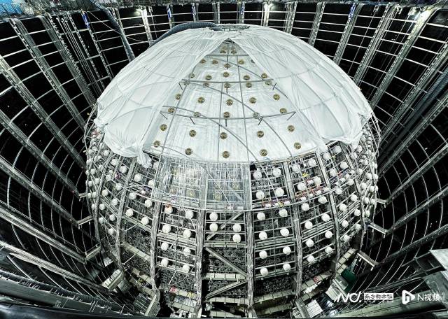 This is the neutrino detector built by Jiangmen Underground Neutrino Observatory, which will be the world's largest liquid scintillator detector with the highest energy precision.