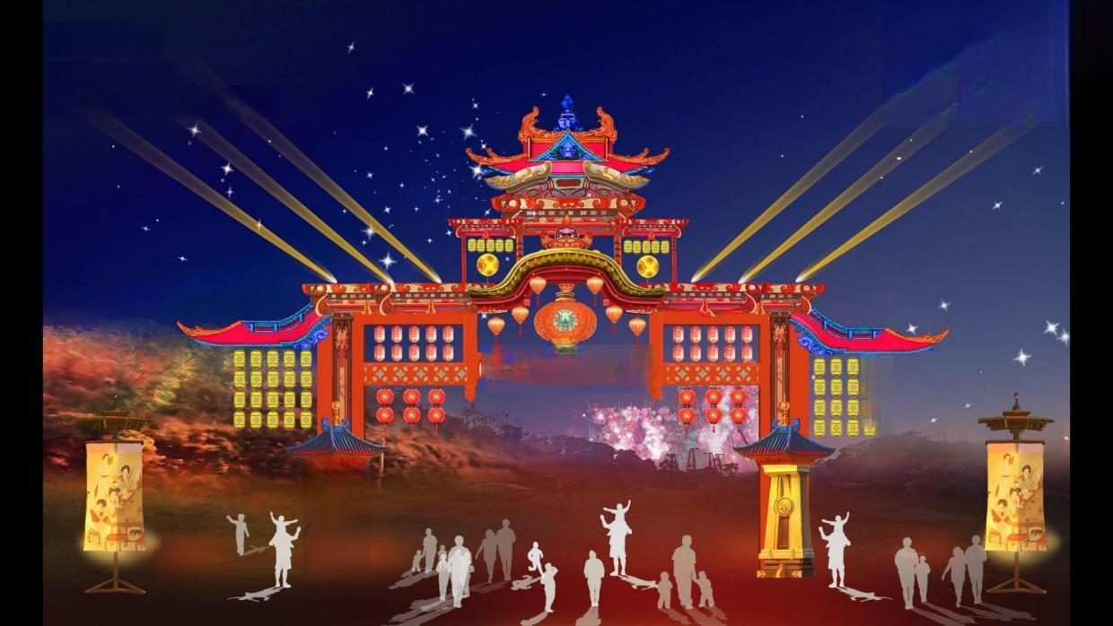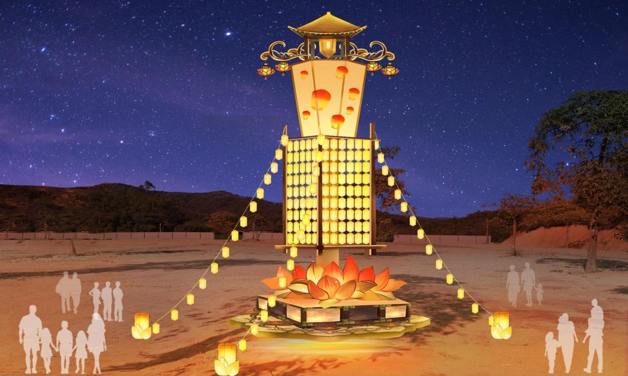 Rendering of an 8-meter-tall "Flower Bud Lantern Tower" symbolizing good fortune and auspiciousness