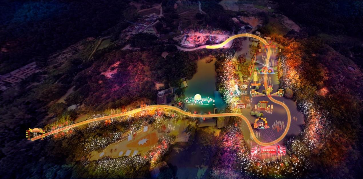 An aerial view of the Grandview Maofeng Bay Lantern Festival