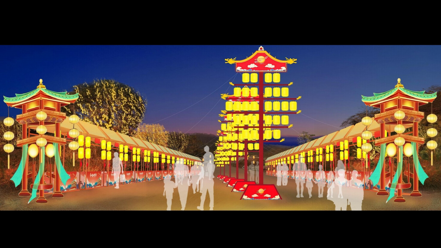 Rendering of a 16-meter-high, 8-meter-long giant lantern group "Shangyuan Lanterns"