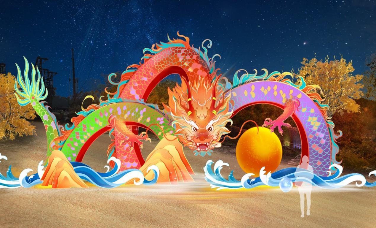 Rendering of a 14-meter-long, 5.5-meter-high dragon lantern group "Dragon Soars Across the Nine Regions"