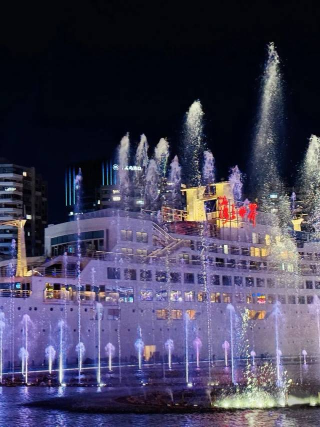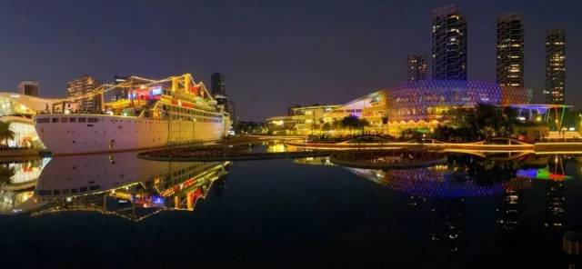 The refurbished Minghua Ship has returned to Sea World, offering stunning waterfront night views for visitors to enjoy.