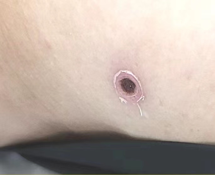 The eschar found on Lin’s skin. (Photo provided to GDToday)