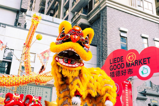Lion dance performance at the market (Photo: Chen Siyuan)
