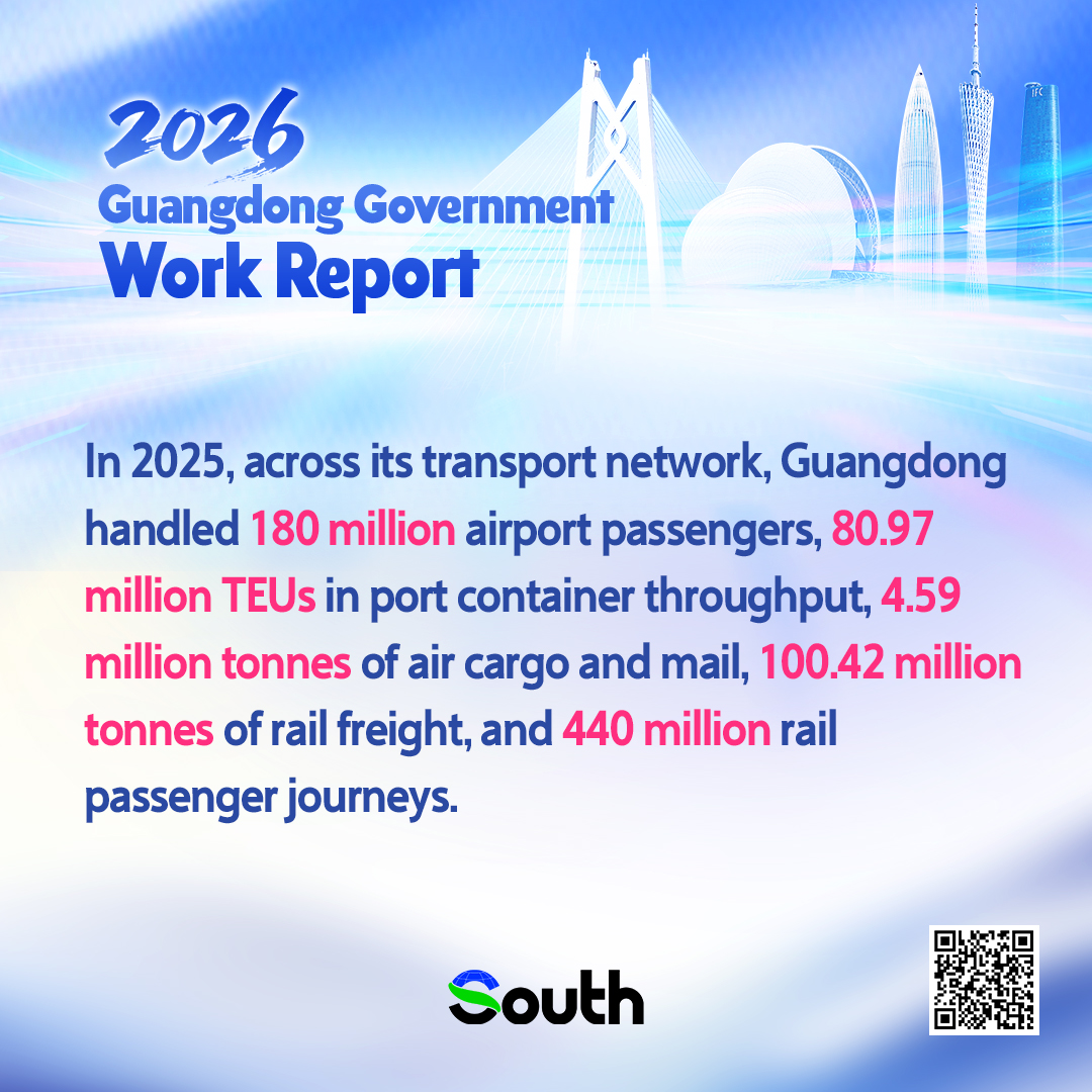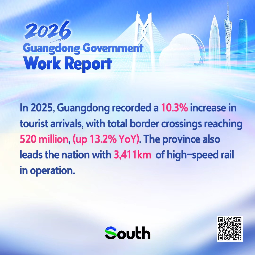 Guangdong, one of China's top economic engines, announced its 2025 economic and social developments in its 2026 Provincial Government Work Report delivered by Governor Meng Fanli on January 26, as the fifth session of the 14th Guangdong Provincial People's Congress kicked off in Guangzhou.