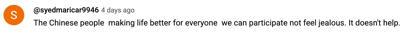 Others expressed admiration for China's long-term development efforts and suggested that its focus on social progress and living standards merited closer examination.