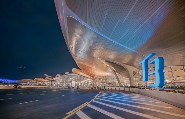 The Phase III expansion is also the first among Chinese hub airports to fully apply Building Information Modeling (BIM) smart construction. Several of its techniques are national firsts: the first terminal with a continuously colored welded stainless-steel roof; the first domestic airport to adopt a 915-meter mid-runway spacing and a 172.5-meter runway clearance; and the first to use shield tunneling under three operating runways.