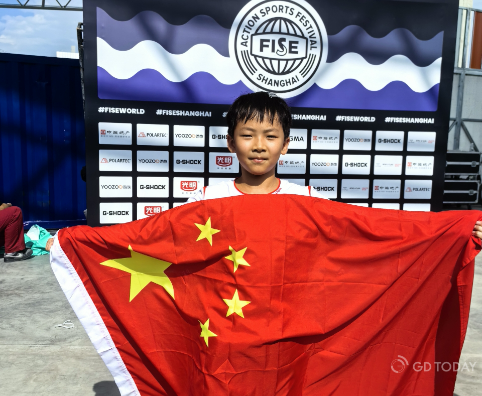 On October 18, 11-year-old Liu Haoran from Huangjiang Town in Dongguan made headlines by winning the championship in the men's youth park competition at the FISE World Extreme Sports Tour in Shanghai, representing the Chinese national team.
