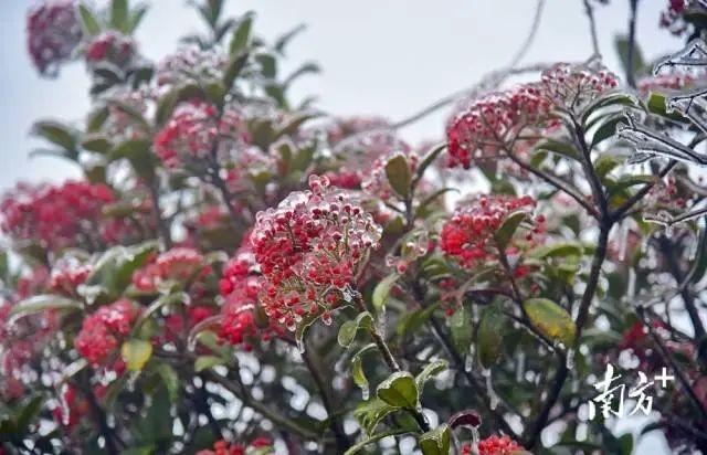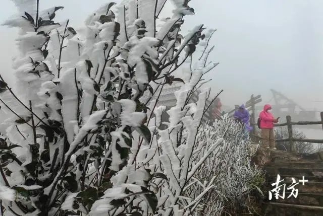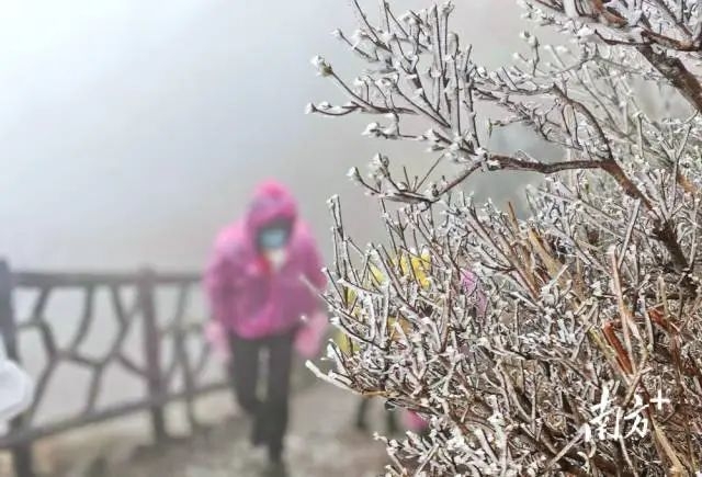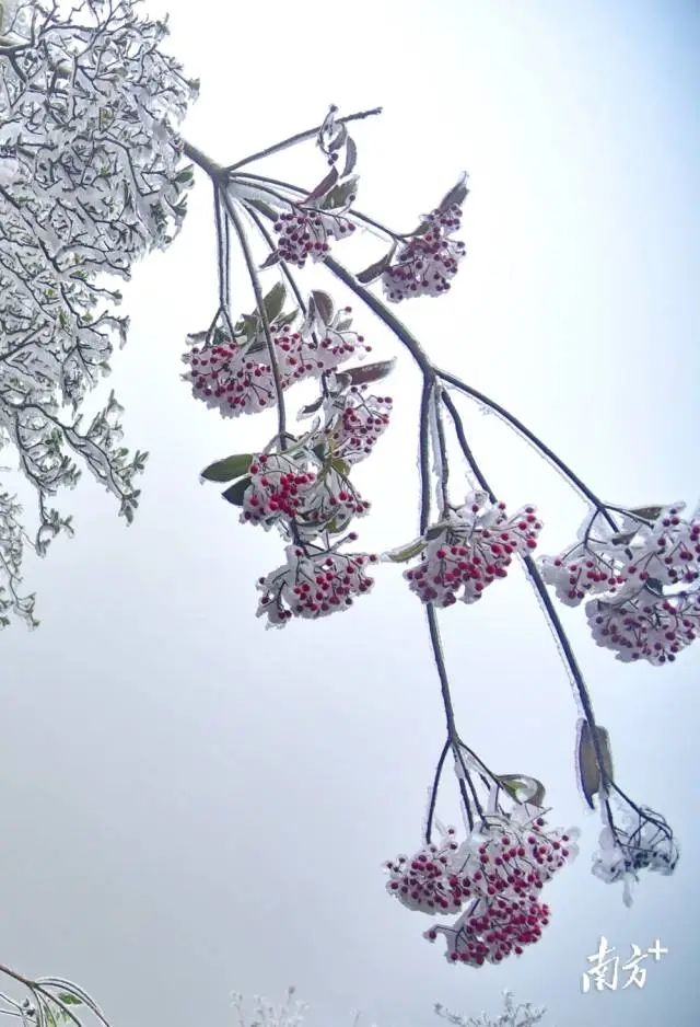As the cold air intensifies, multiple regions in Qingyuan have issued orange warnings of cold, and Jinzi Mountain is once again graced with beautiful snow and ice wonders.