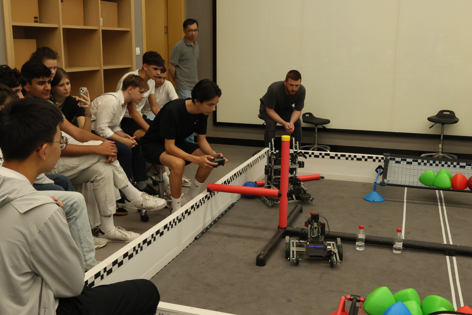 In the afternoon, they joined a VEX Robotics workshop. Local students demonstrated how to use a controller to operate entry-level VEX robots, after which the two sides teamed up for an interactive robotics competition.