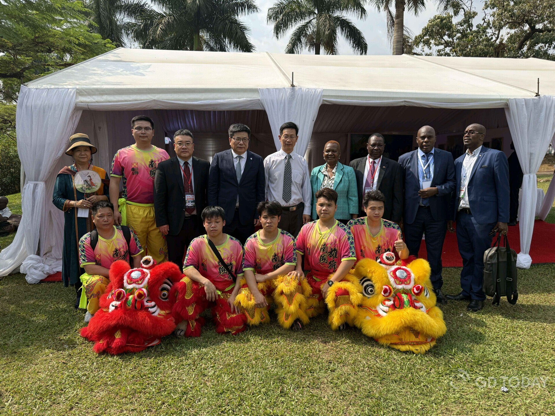 At the invitation of the Economic and Commercial Office of the Embassy of the People's Republic of China in the Republic of Uganda, the General Association of Guangdong Compatriots in East Africa, and the General Association of Chancheng District, Foshan Compatriots in East Africa, the Overseas Chinese Federation of Chancheng District, Foshan, dispatched a six-member dragon and lion dance team to East Africa to participate in this event.