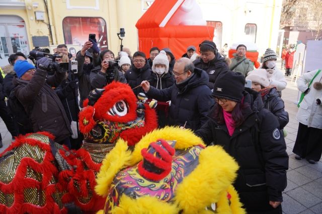 Harbin, currently at the heart of China's winter tourism season, provided a striking contrast to Guangdong's warm climate and subtropical charm. The Guangdong showcase took place at two iconic locations—Harbin's Central Street on January 31 and the Harbin Ice and Snow World on February 1—bringing a distinctly southern New Year atmosphere to the snow-covered city.