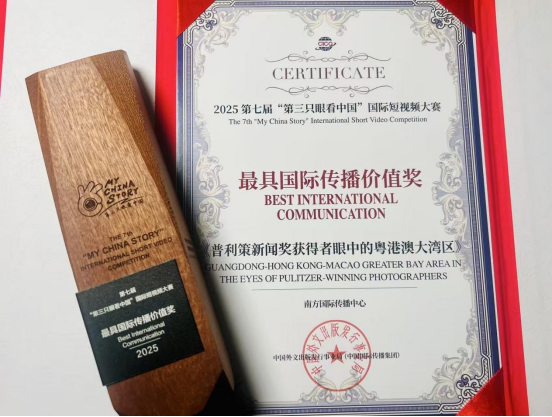 A micro-documentary series produced by the South of Nanfang Media Group, titled "Guangdong-Hong Kong-Macao Greater Bay Area in the Eyes of Pulitzer-Winning Photographers," has been honored with the "Best International Communication Award." The prize was presented at the 7th "My China Story" International Short Video Competition awards ceremony in Beijing on December 20.