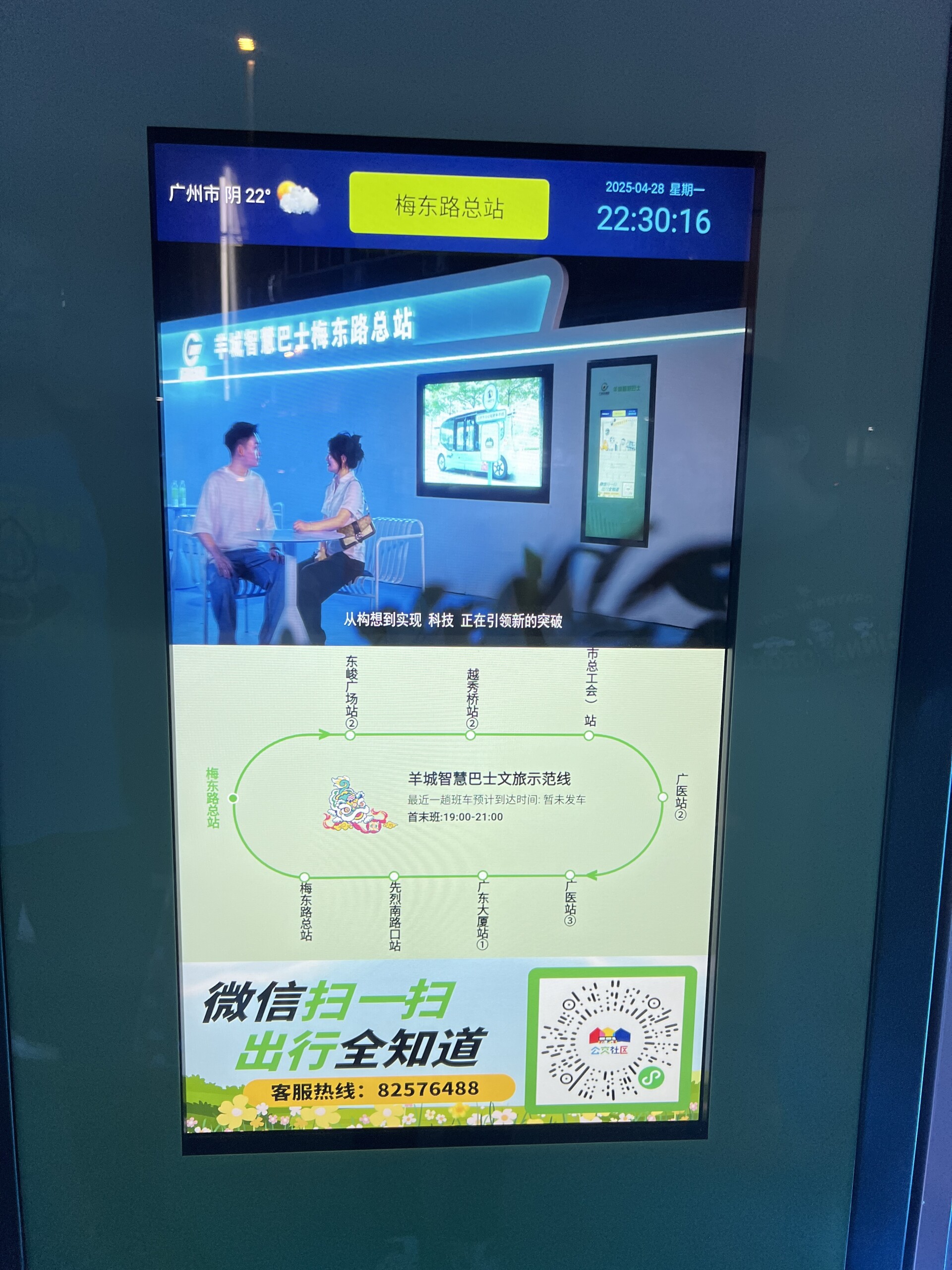 A new autonomous bus line was launched on Dongfeng Road in the Yuexiu District of Guangzhou, with trial operations beginning on April 29 at 7 PM. This marks Guangzhou's first autonomous bus route on a major urban road in the city center and the first focused on culture and tourism.