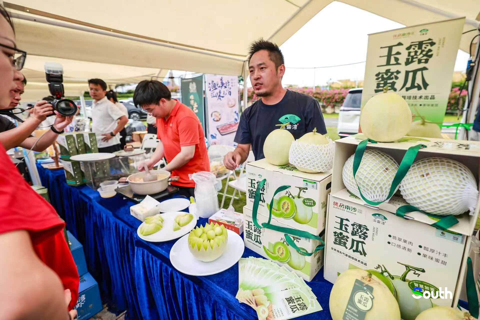 The Harvest Market drew bustling crowds with local specialties such as mud crabs, Yulu melons, and guavas. "It's fantastic—live streaming makes it even more exciting," said Zhang Bin, a streamer from Mingzhu Agricultural Park. "Two Yulu melons are just 98 yuan, and the deals in our live stream sold out almost instantly.”