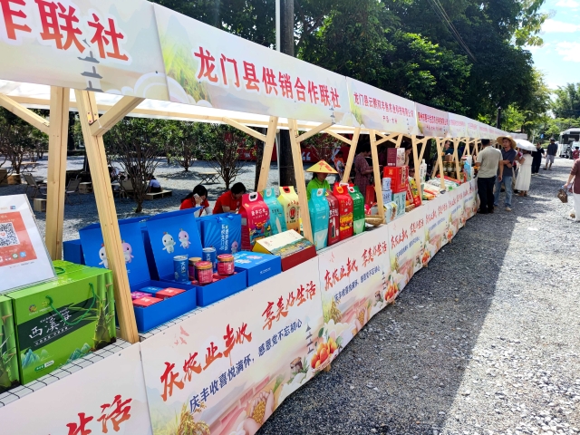 About 50 agricultural operators set up stalls in a special exhibition area for agricultural products. Local specialties like Longmen Rice, Xishi Bamboo Shoots, Longmen Honey, and Mazha Carambola were featured, alongside creative cultural products inspired by intangible cultural heritage. In the tasting area, visitors eagerly sampled Longmen Rice Cakes and specialty mountain tea, offering high praise.